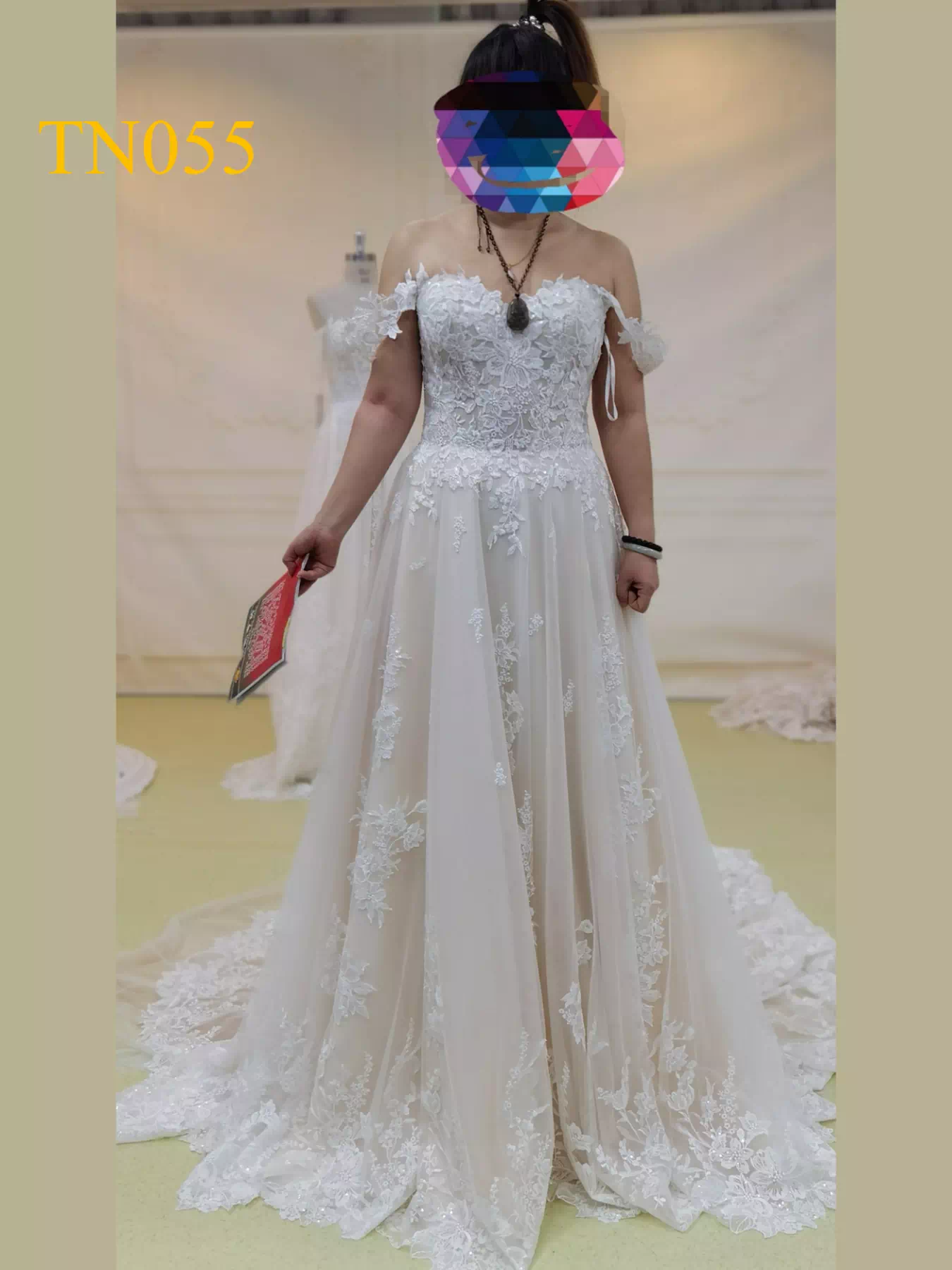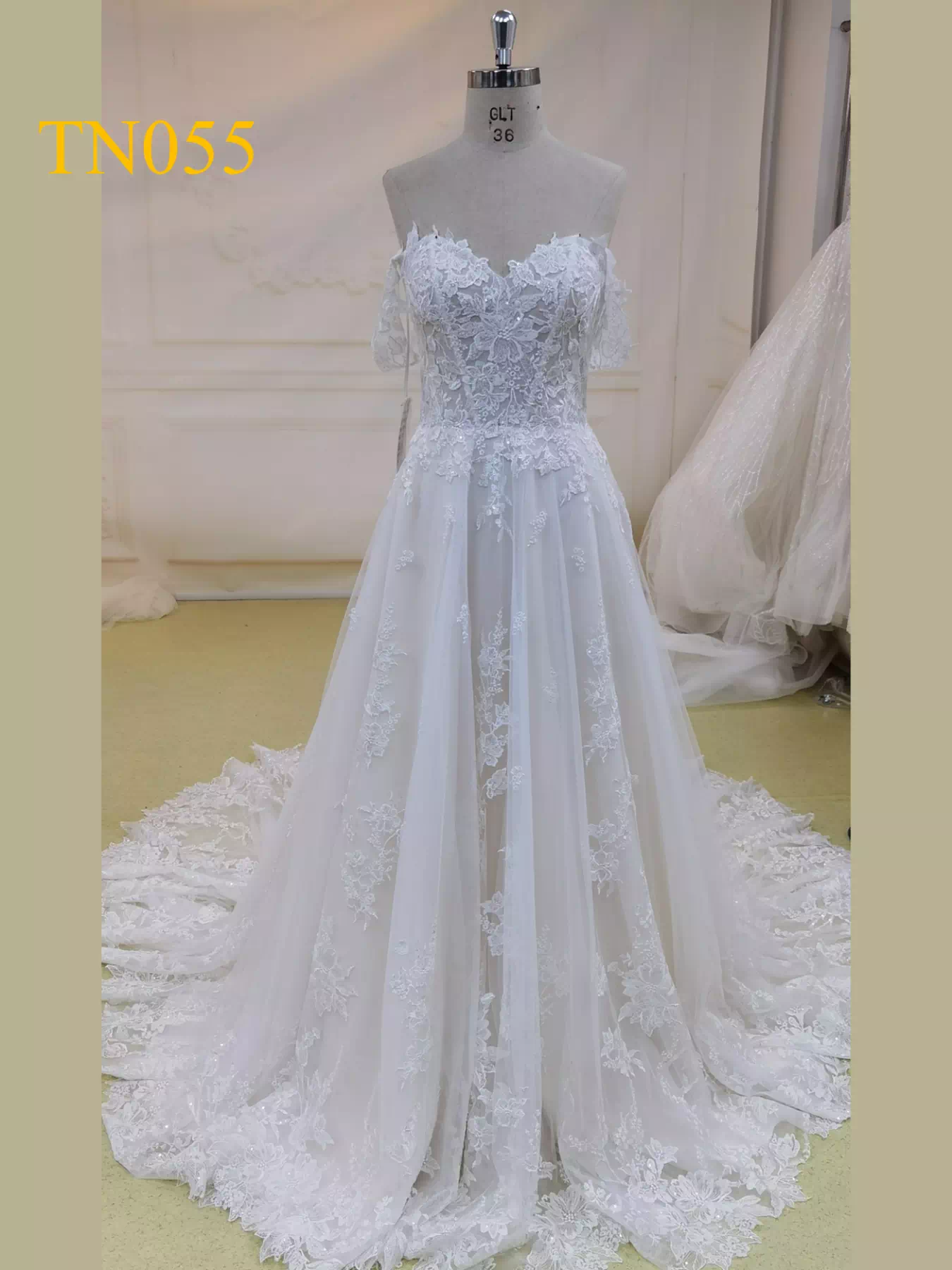 Off Shoulder Half Backless and Sweetheart Neck A Line Wedding Dress TN055