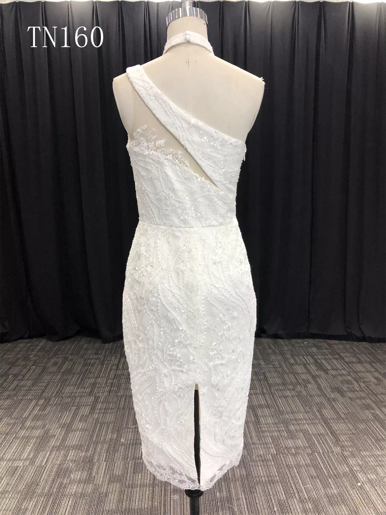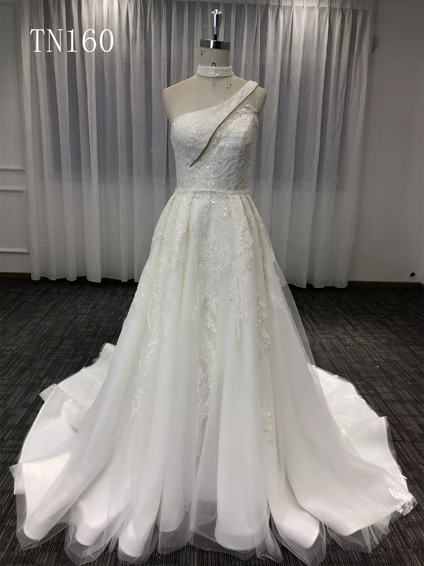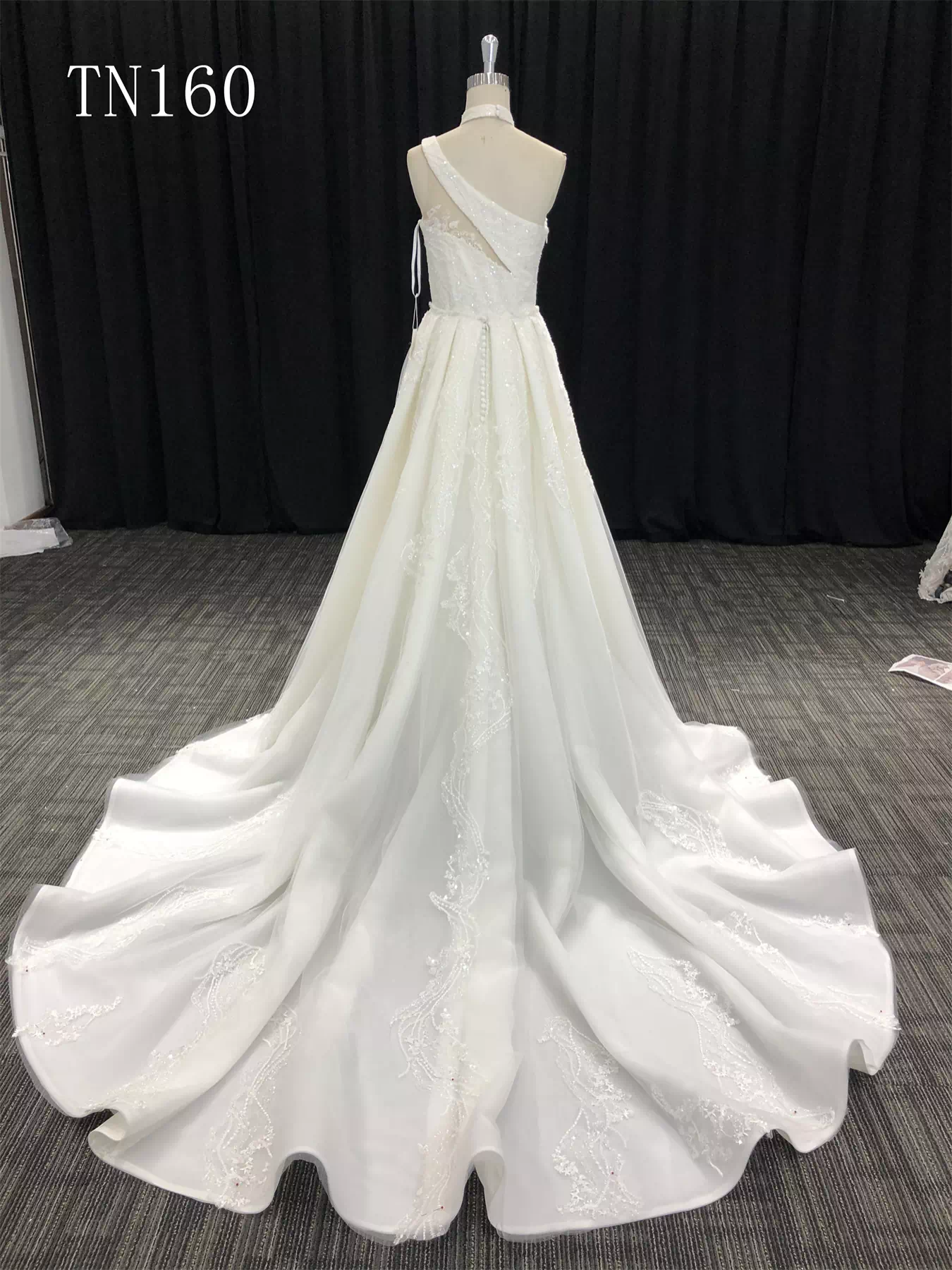 One Shoulder Tea Length Skirt and Overskirt Wedding Dress TN160