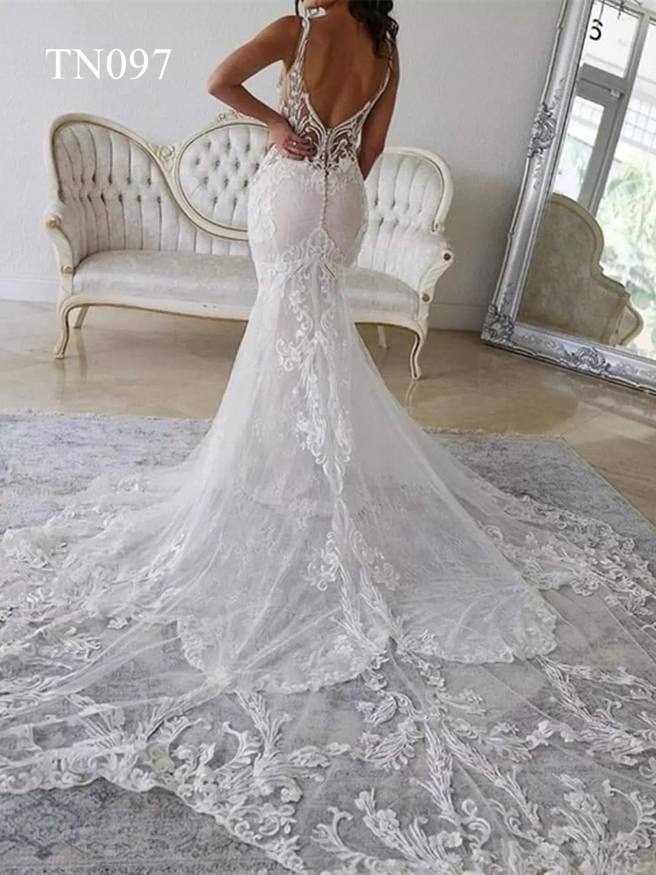 Premium Custom Made Appliques V Neckline Mermaid Dress TN097