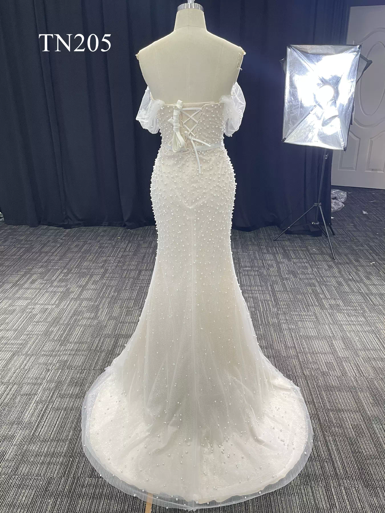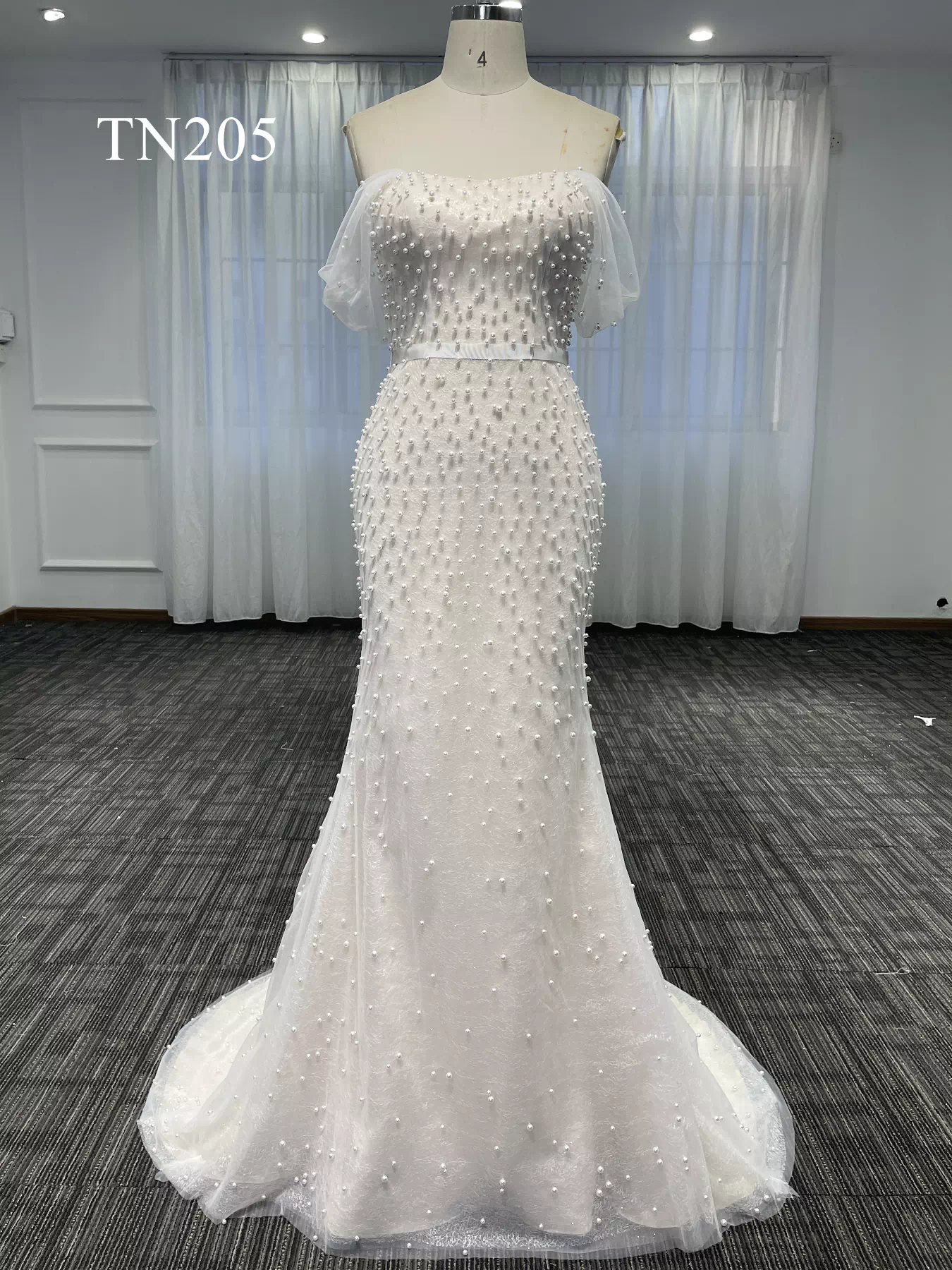 Simple Beaded Tulle Off Shoulder Mermaid Dress TN205