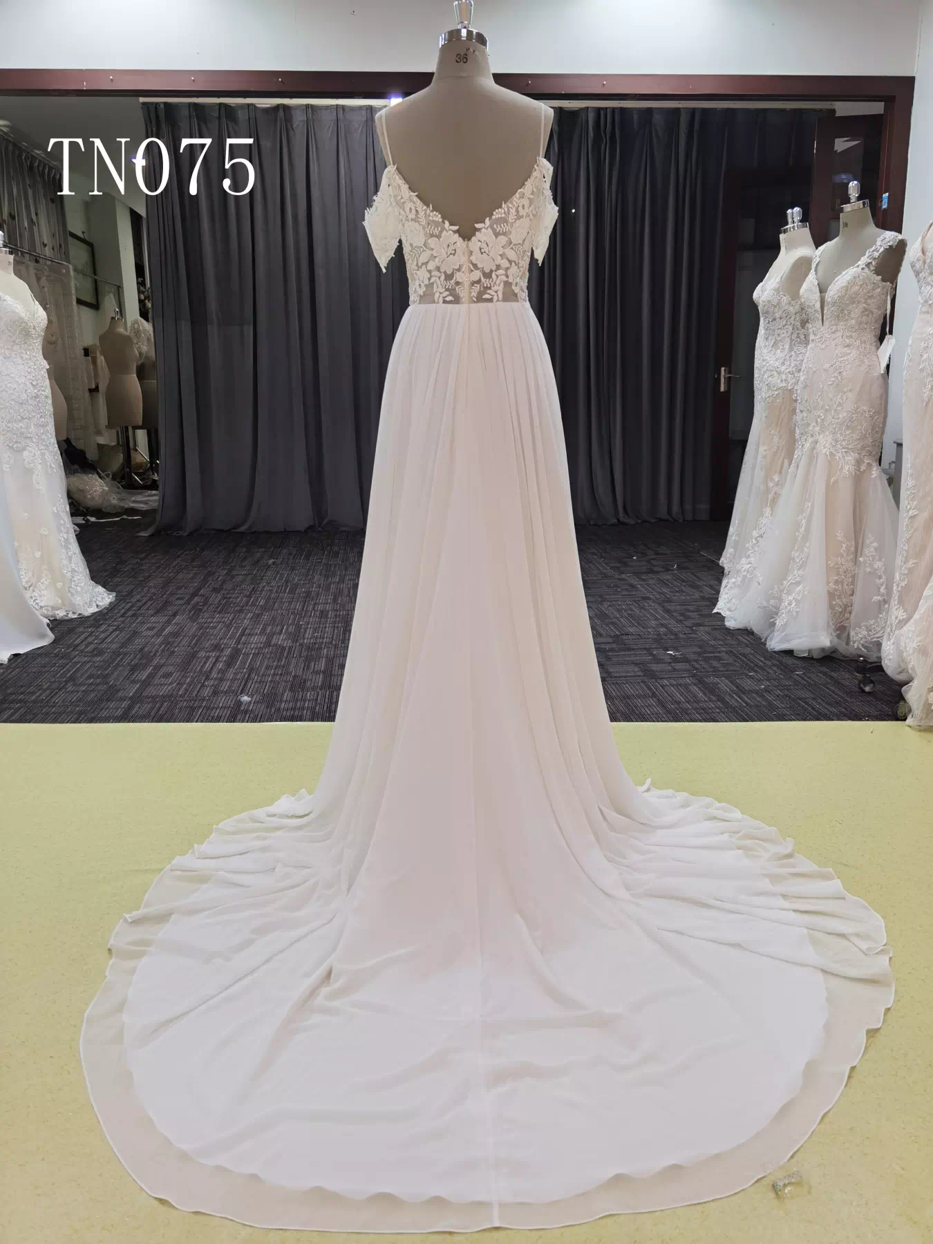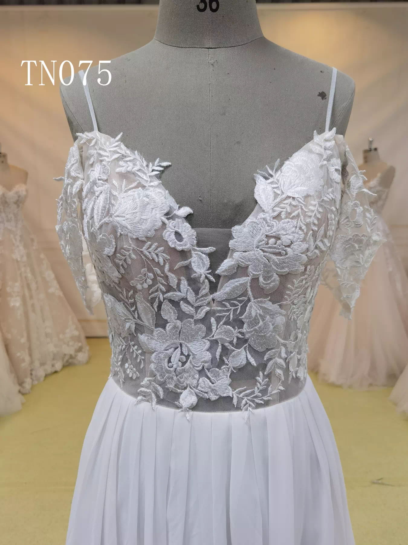 Spaghetti Strap Off Shoulder V Back Bridal Dress TN075