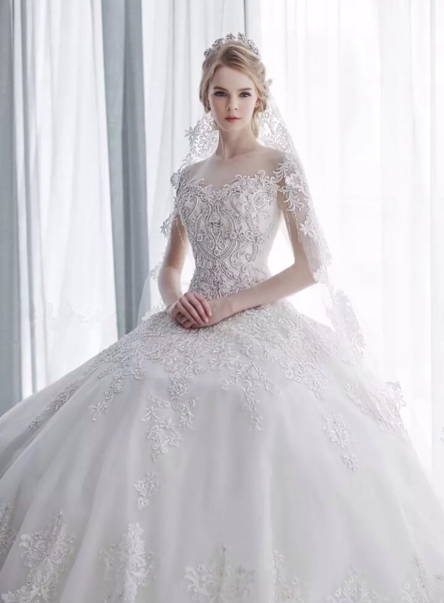 Suitable for wedding dresses: The most recommended one is a sling wedding dress, because it can make your shoulders look much slimmer, revealing your clavicle and slender neck, which will divert your attention from your shoulders. At the same time, the tube top wedding dress is also very suitable. It is recommended to cover it with a long veil.